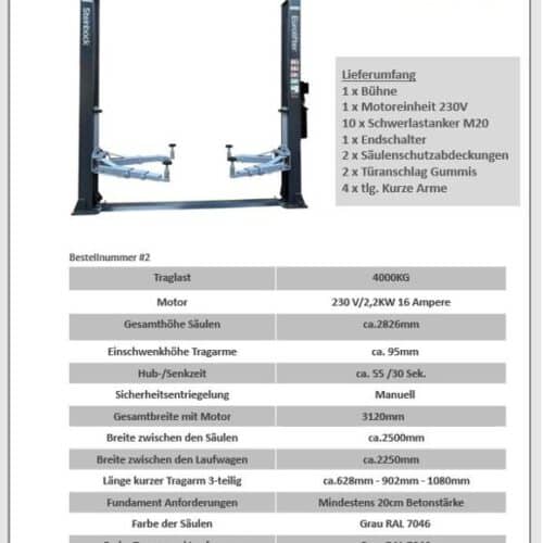 2 Säulen Hebebühne für Garagen – extra schmal