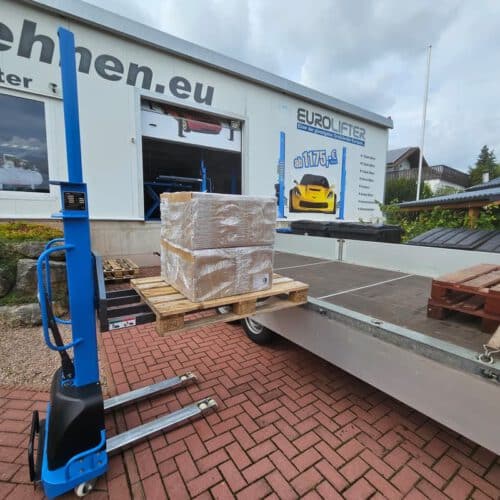Das anheben und absetzen der Paletten funktioniert elektrisch, also kein schweißtreibendes pumpen an der Deichsel.